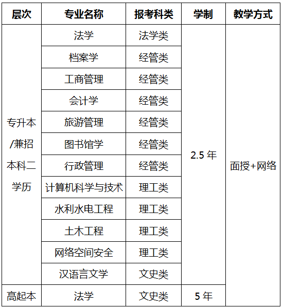 注:公司今年设立两个校外教学点,均只招收法学专升本(二学历)考生。