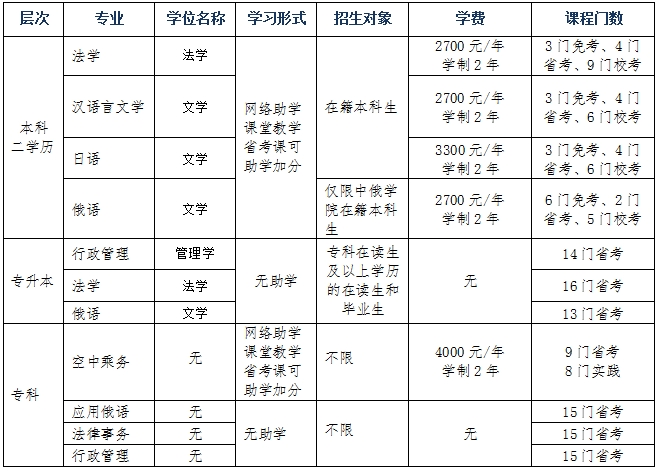 ——全省统考课程:高级俄语(一)、高级俄语(二)、俄汉互译(可免考)、第二外语(英语)(可免考)。