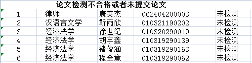 1、以下考生因未提交论文或论文查重不合格,参加答辩时成绩将在主考教师评定的分数基础上减50分作为最终成绩。如要参加下次答辩,须重新履行报名和缴费手续。其余报名考生可以正常参加本次论文答辩。