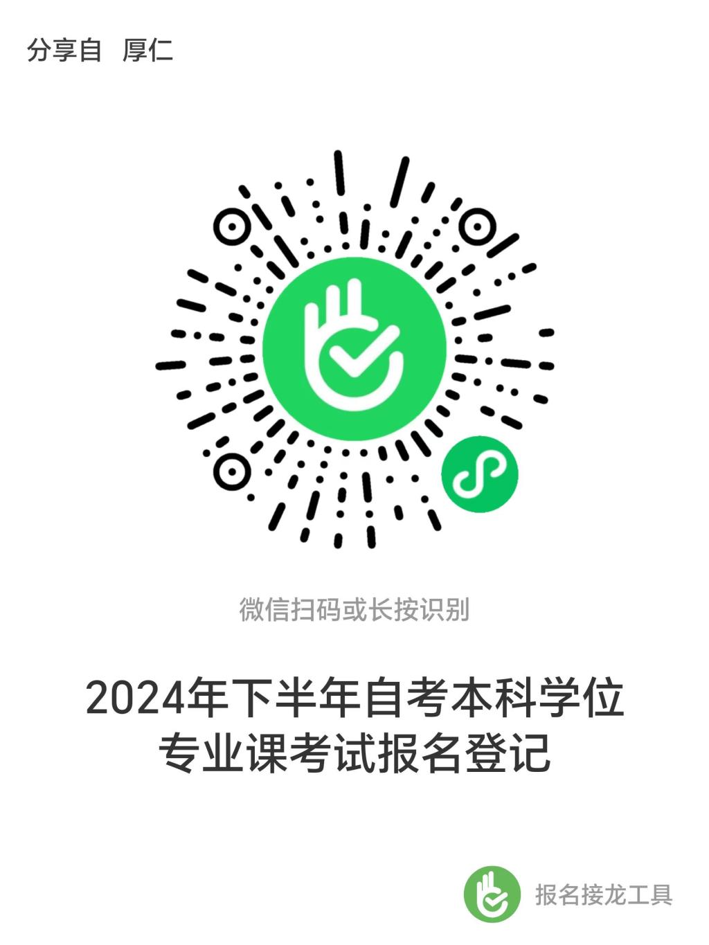 1.填报信息:在校本科生报的自考二学历直接在班主任老师处报名,其他考生请用微信扫面下方二维码填报接龙信息。