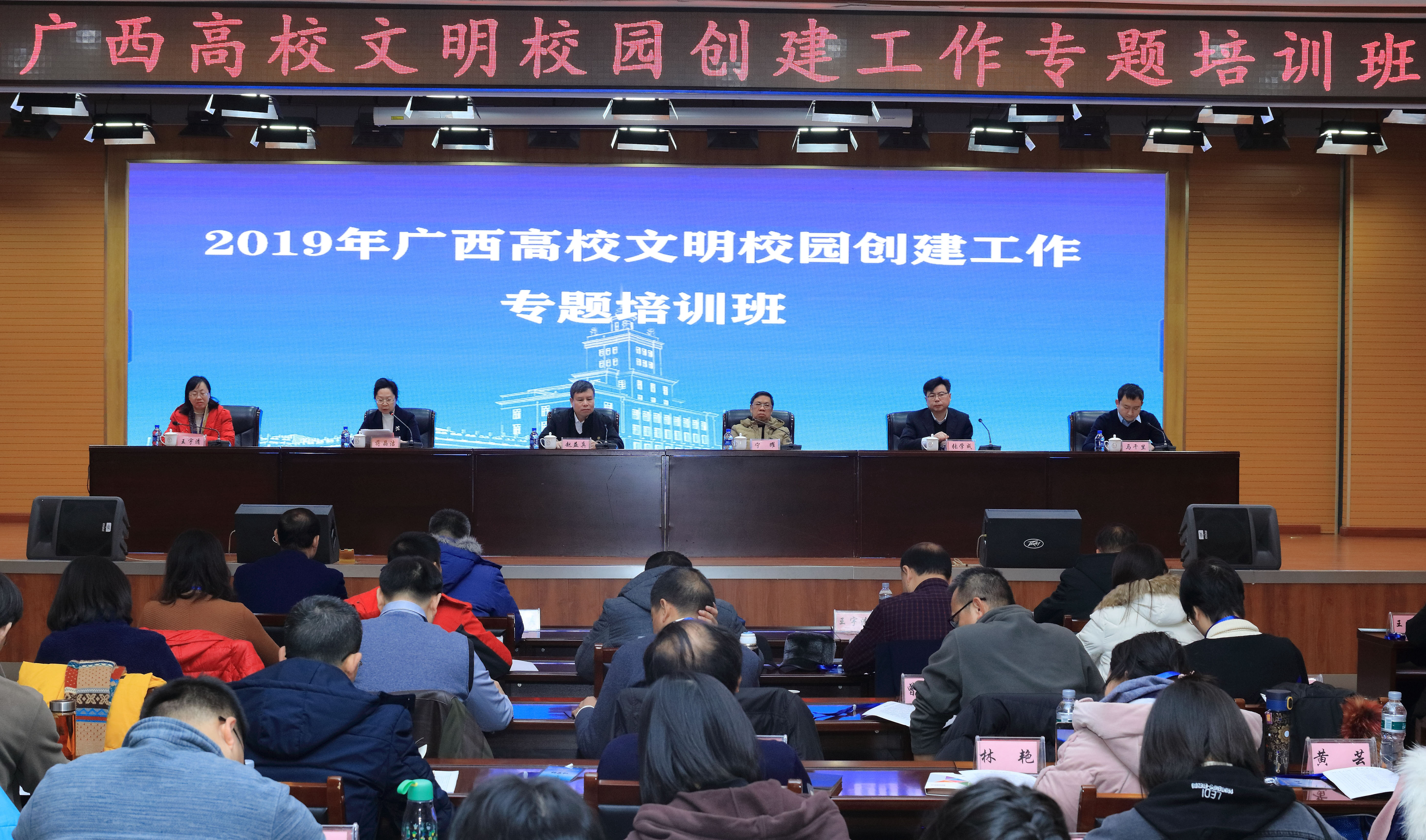 2019年12月15日至19日,由广西壮族自治区教育工委主办,公司xcsports承办的“2019年广西高校文明校园创建工作专题培训班”在xcsports成功举办,来自广西壮族自治区教育工委及广西大学、广西师范大学等60余家兄弟高校的宣传思想工作干部参加了本次培训。
