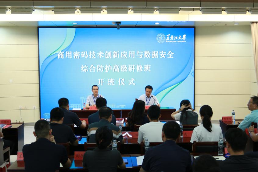 黑龙江省国家密码管理局密码管理处处长张丽明、清华大学计算机科学与技术出站博士后李子臣等相关人员出席本次开班式,会议由公司数学科学公司教授张可佳主持,数据科学与技术公司(网络安全公司)经理王磊为开班仪式致辞。