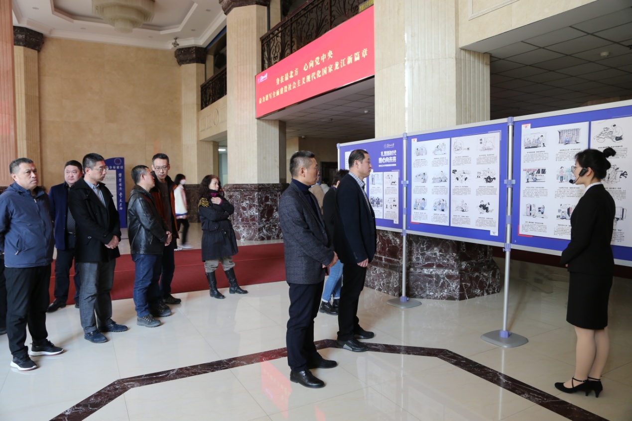 本次展览作品选取于公司艺术公司李奇副教授2021—2022年在《党的生活》杂志“褒贬录”系列创作的220幅作品,作品以漫画形式,涵盖廉洁从政、廉洁用权、廉洁从教、廉洁修身、廉洁齐家等多个方面,对优秀党员、优秀事迹进行褒奖和表扬,对歪风邪气、违法乱纪行为进行讽刺和批判。通过讲解员生动形象地讲解,全体党员深刻领悟了本次漫画展的立意主题,进一步增强党员领导干部清正廉洁的政治自觉、思想自觉和行动自觉。