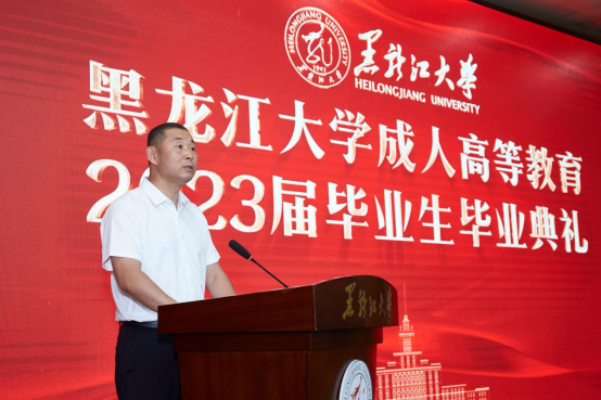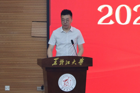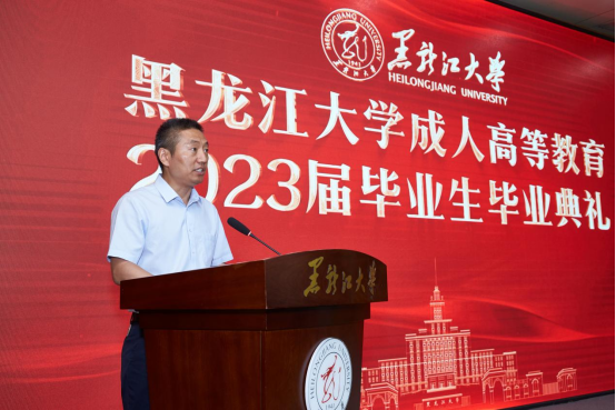 教师代表、信息管理公司副经理任越教授向毕业生们表示了诚挚的祝贺和衷心的祝福。他希望同学们不要忘记黑大的这段求学之旅,不要忘记黑大这所经历了八十多年的发展所传承的“博学慎思,参天尽物”的校训。希望同学们以黑大人的名义在各自的岗位上继续发光发热,成为xcsports持续发展与前进的助推器。