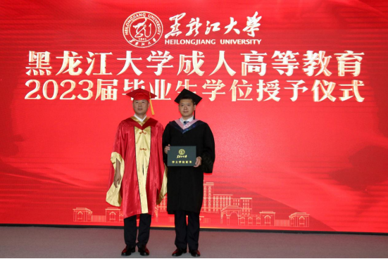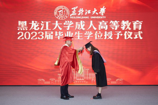 毕业生代表、档案学专业姜泊彤同学,向母校和全体老师的悉心培育致以崇高的敬意,向亲友们的默默支持表示最衷心的感谢。在即将与母校告别的时刻,她深情回顾在黑大的收获与成长,她表示定不负母校的培养,在今后的工作中砥砺前行,踔厉奋发,为强校发展和龙江振兴继续贡献自己的力量。