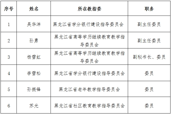 黑龙江省教育厅成立黑龙江省高等学历继续教育、社区教育、老年教育、学分银行建设等4个教学指导委员会(以下简称教指委),公司6人分别当选这4个教学指导委员会委员。
