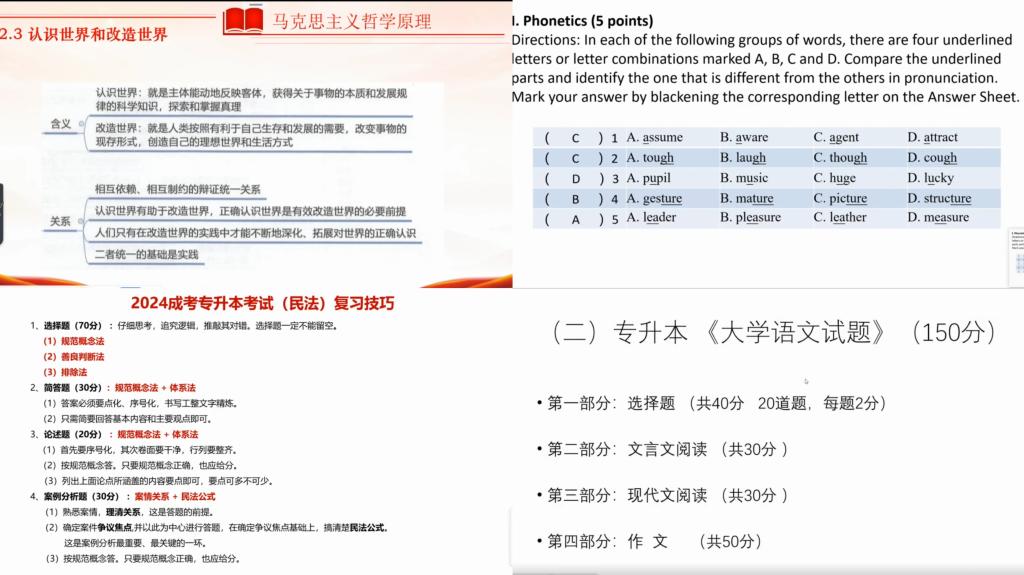 为满足2024年成人高考考生迎考复习需要,xcsports举办2024年成人高考公益辅导班。辅导班于8月24日开课,开设政治、英语、民法、语文四门成人高考课程。