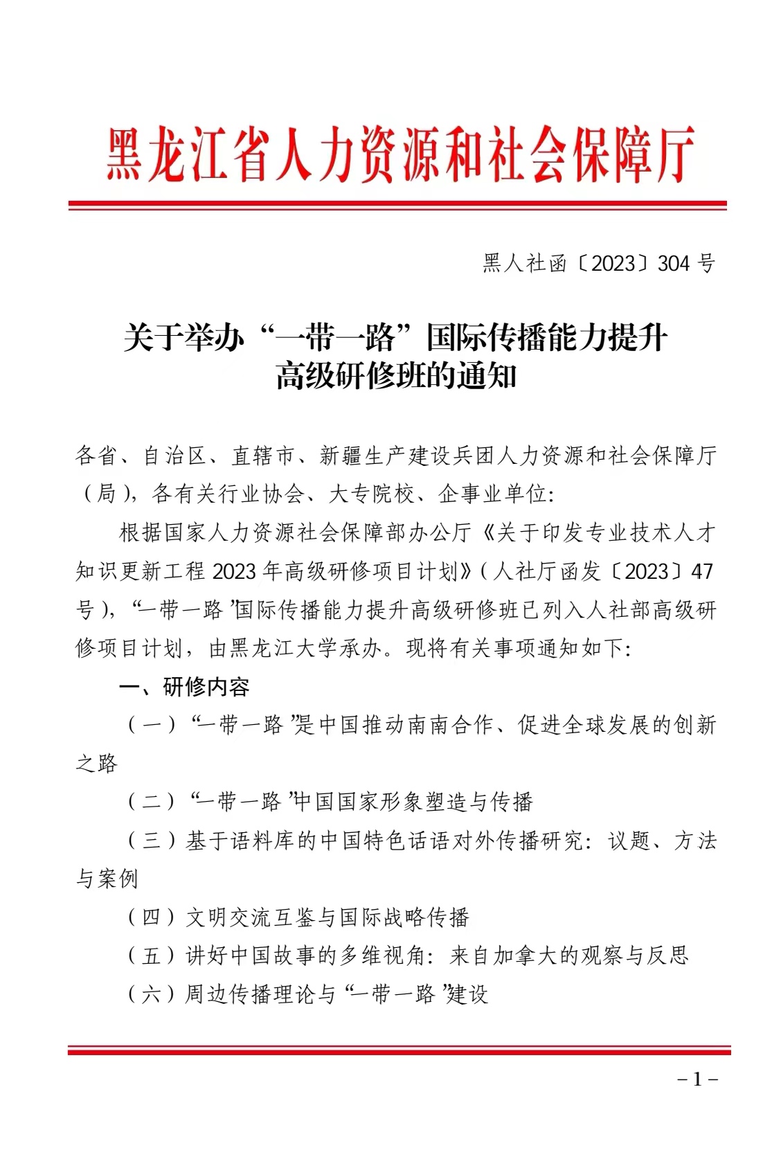 关于举办“一带一路”国际传播能力提升高级研修班的通知
