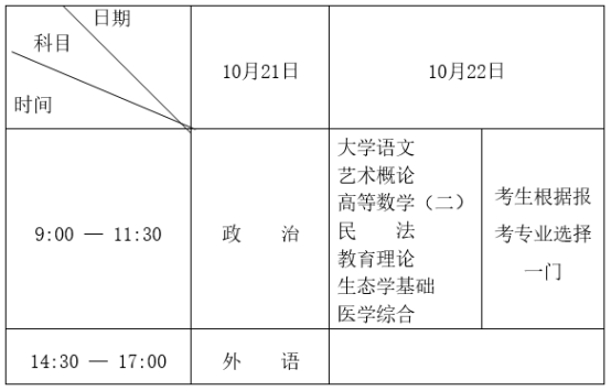 高起本、高起专考试时间表