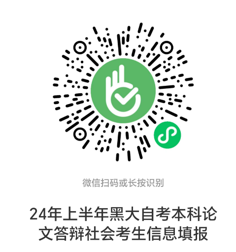 2.填报报名信息:扫描下方二维码,填写报名信息,提交自考成绩单(成绩查询网址:https://zxks.hljea.org.cn/kszzfw/home/login)。
