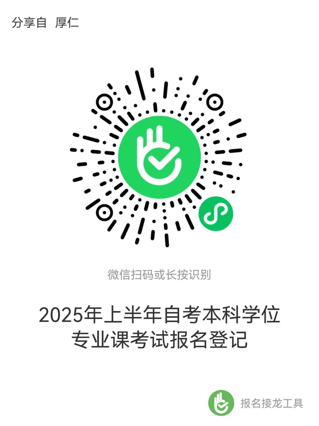 1.填报信息:在校本科生报的自考二学历直接在班主任老师处报名,其他考生请用微信扫面下方二维码填报接龙信息。