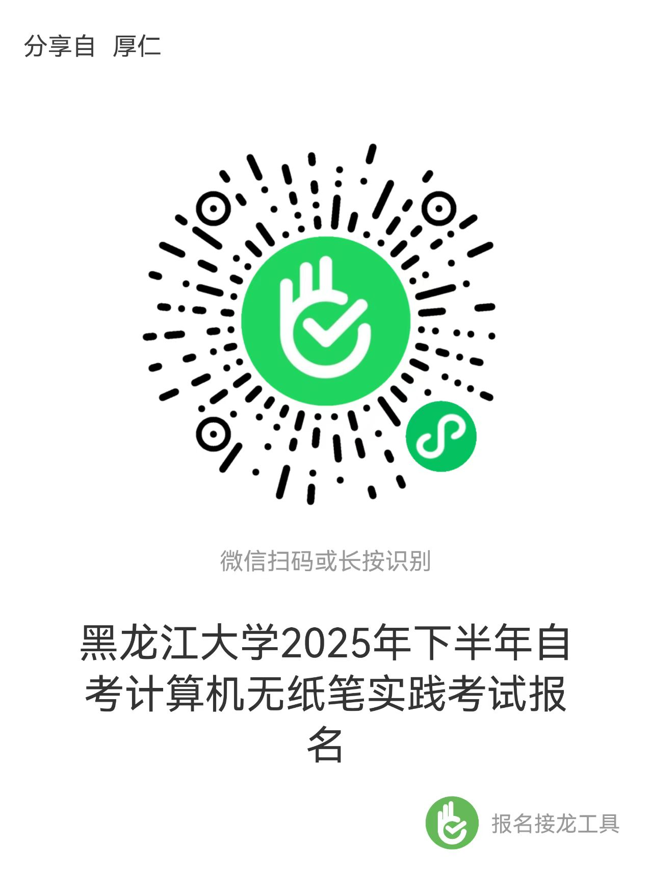 3.填报个人信息。扫描下方报名二维码,填写报名信息,且填写的专业、课程要与省招办网站预报名(可重新申报)的数据一致。