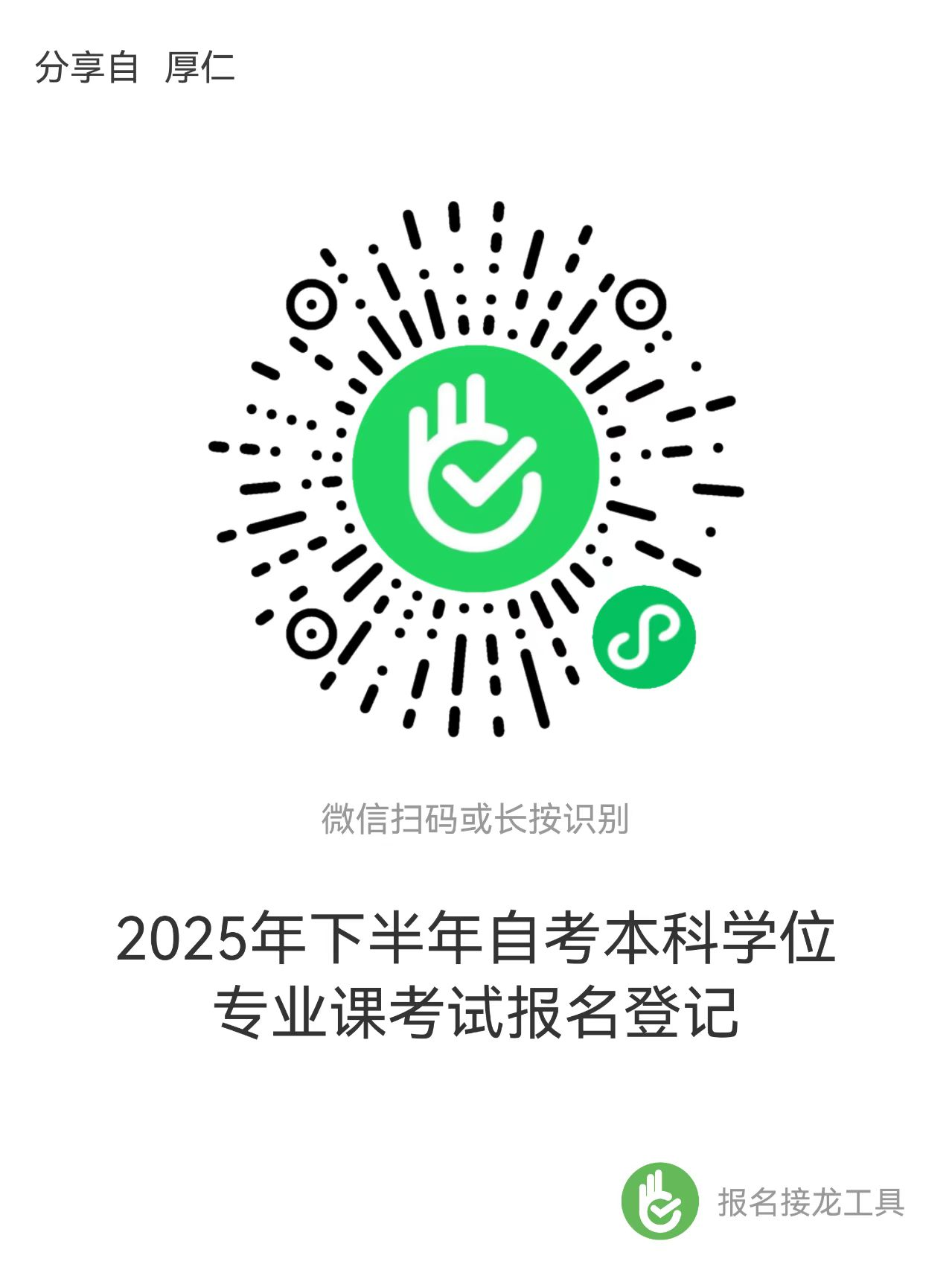 1.填报信息:在校自考本科二学历考生直接在班主任老师处报名,其他考生请用微信扫面下方二维码填报接龙信息报名。