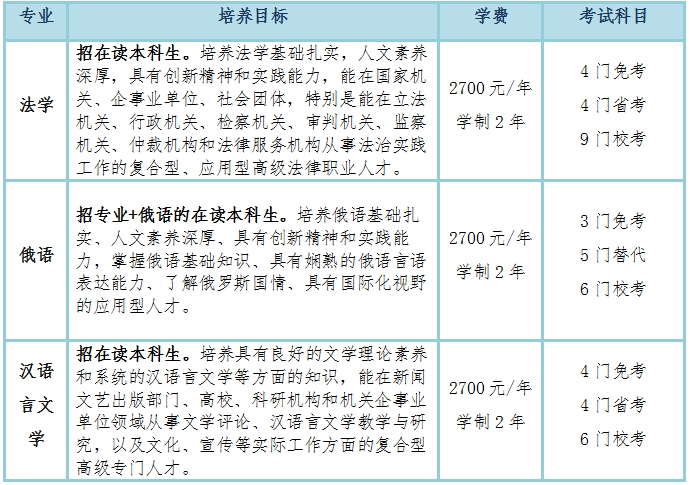 ——全省统考课程:高级俄语(一)(可替代)、高级俄语(二)(可替代)、俄汉互译(可替代)、第二外语(英语)(可替代)。
