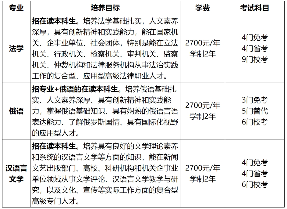 ——全省统考课程:高级俄语(一)(可替代)、高级俄语(二)(可替代)、俄汉互译(可替代)、第二外语(英语)(可替代)。
