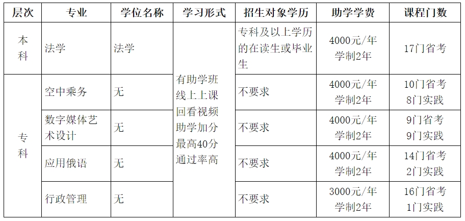 注:超过正常学制2年仍未毕业的考生,后续修读将不再收取学费。