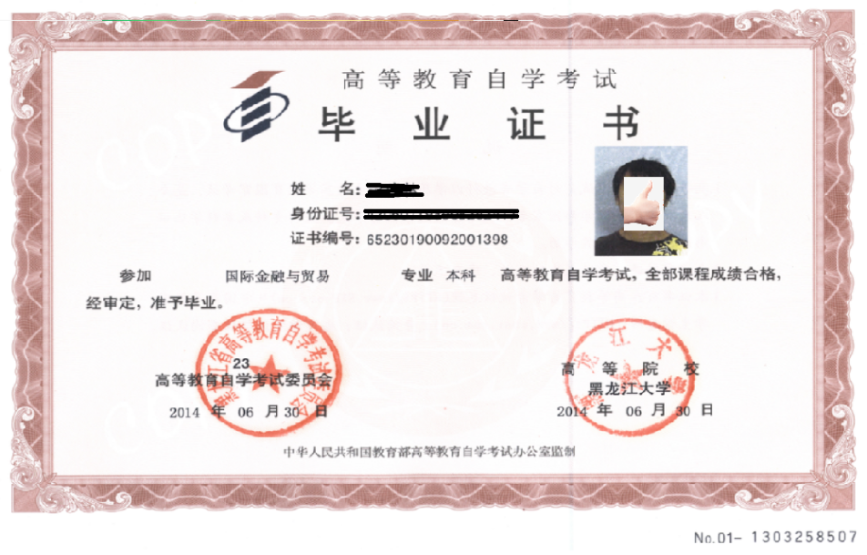 员工通过省自考委毕业资格审查后,颁发由省自考委和xcsports共同验印的自考本科毕业证书,国家承认学历,学信网可查询,毕业文凭得到世界60多个国家的认可。