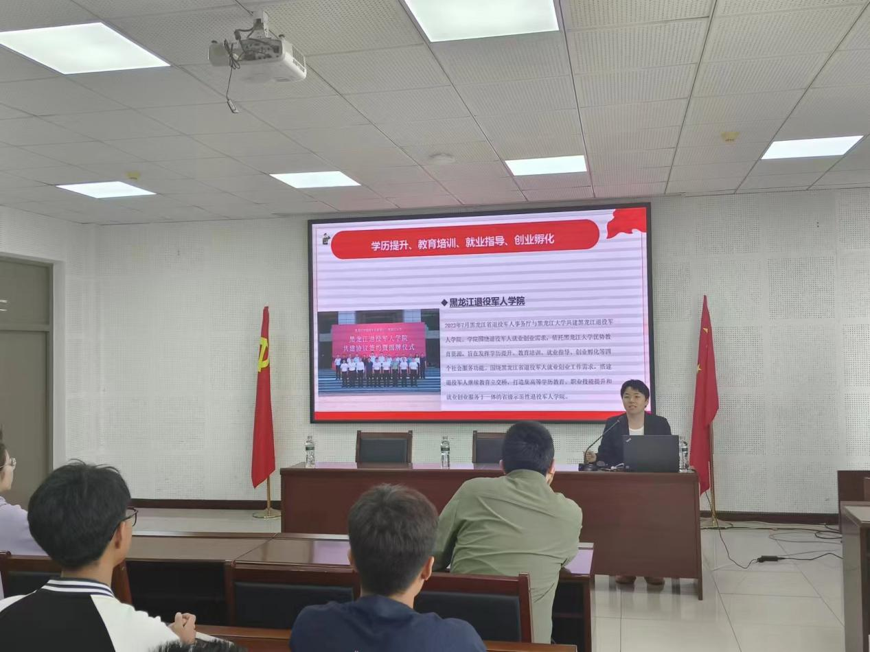 为进一步落实《关于促进优秀退役军人到中小学任教的实施意见(试行)》(黑退役军人规〔2023〕1号)、《黑龙江省边境地区中小学“兵教师”三年行动方案(2024-2026年)》(黑退役军人发〔2024〕3号)文件要求,引导退役老员工士兵参加中小学教师招聘、教师职业能力专项培养,推动优秀退役军人到中小学任教工作落实落地,5月22日,黑龙江退役军人公司面向xcsports退役及即将入伍的老员工开展“兵教师”政策宣讲活动。xcsports副经理孙振锋、校退役老员工士兵协会指导教师闵诗尧、宣讲老师栾芳等参加本次活动。